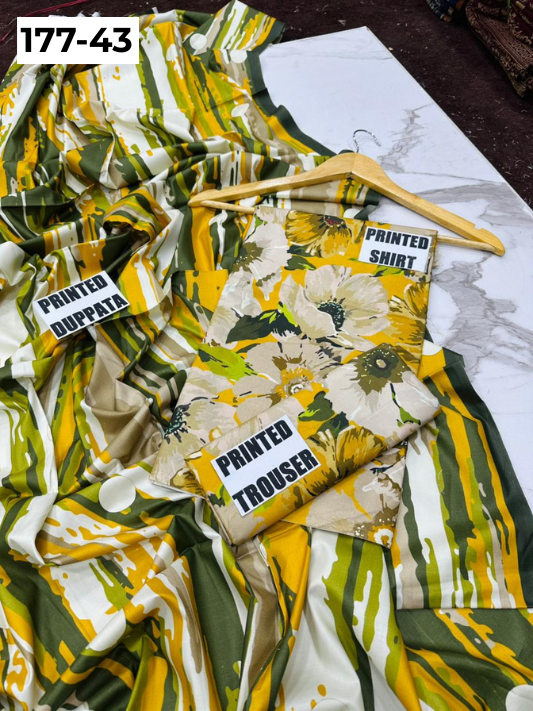 VOL 177 | DS 43 | DIGITAL PRINTED LINEN 3PC LINEN DUPATTA
