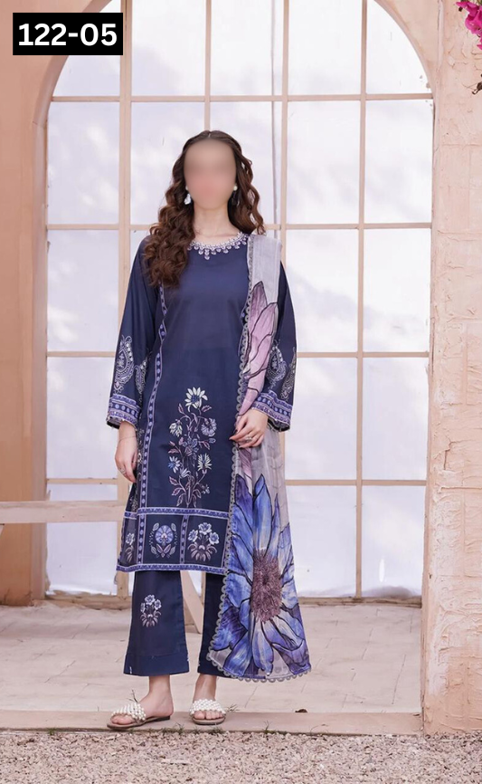 VOL 122 | DS 05 | DIGITAL PRINTED LAWN 3PC BAMBER CHIFFON DUPATTA