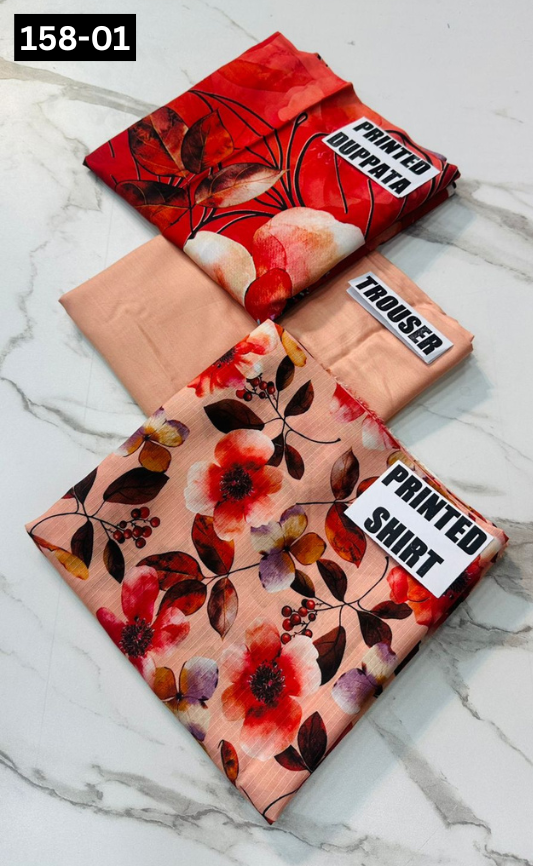 VOL 158 | DS 01 | DIGITAL PRINTED BANADORA LINEN 3PC LINEN DUPATTA