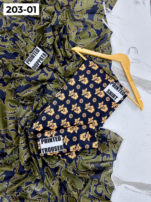 VOL 203 | DS 01 | DIGITAL PRINTED BANADORA LAWN 3PC VOIL LAWN DUPATTA