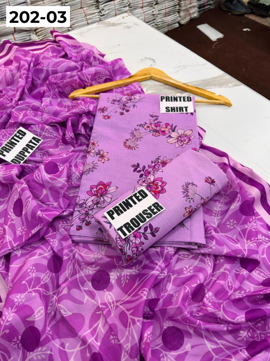VOL 202 | DS 03 | DIGITAL PRINTED BANADORA LAWN 3PC VOIL LAWN DUPATTA